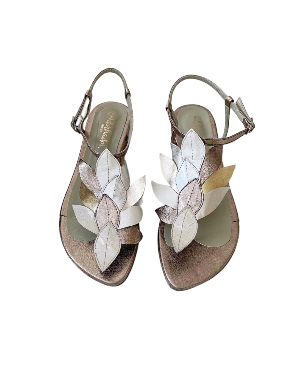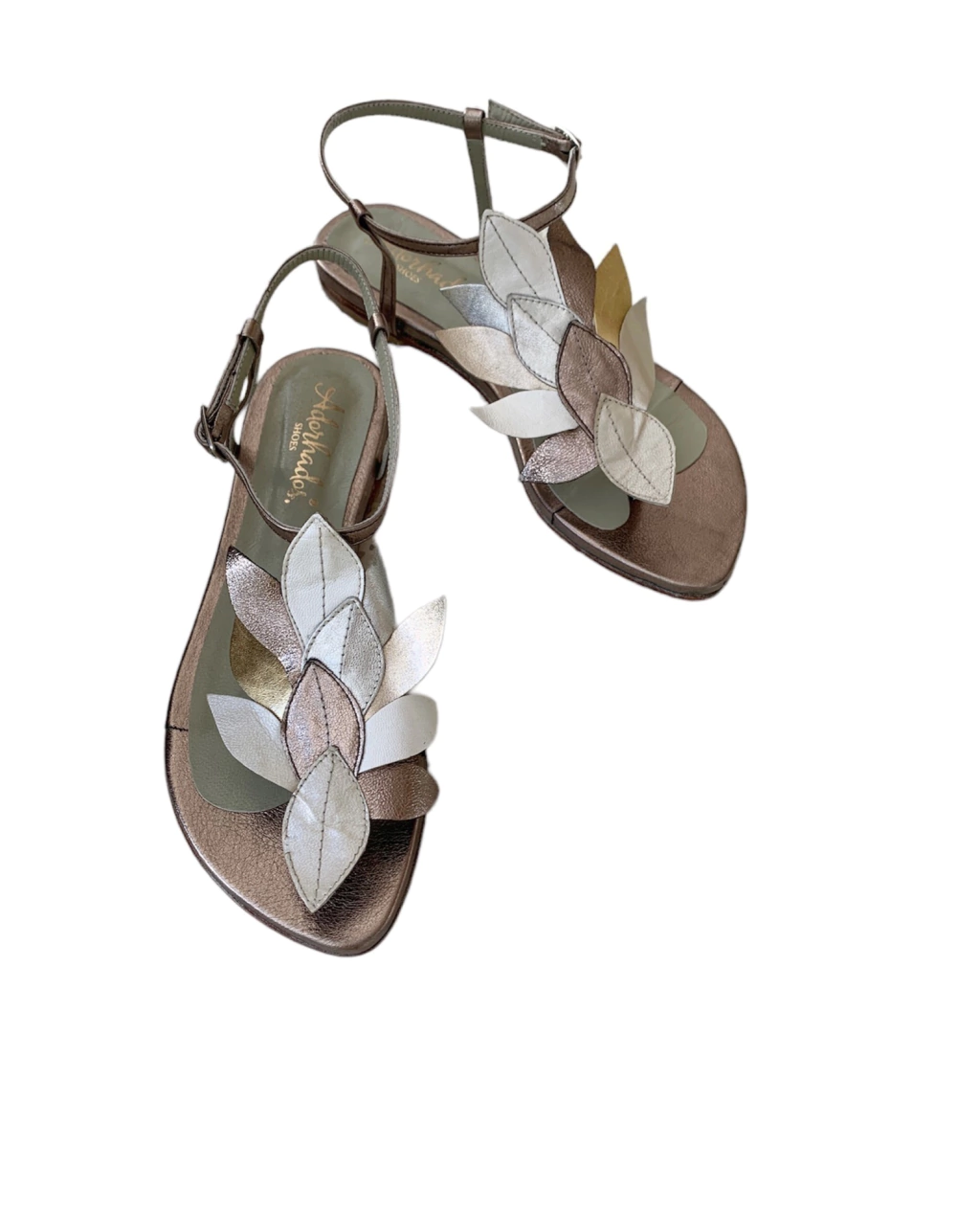 Detalles de hojas en empeine en tonos metalizados.